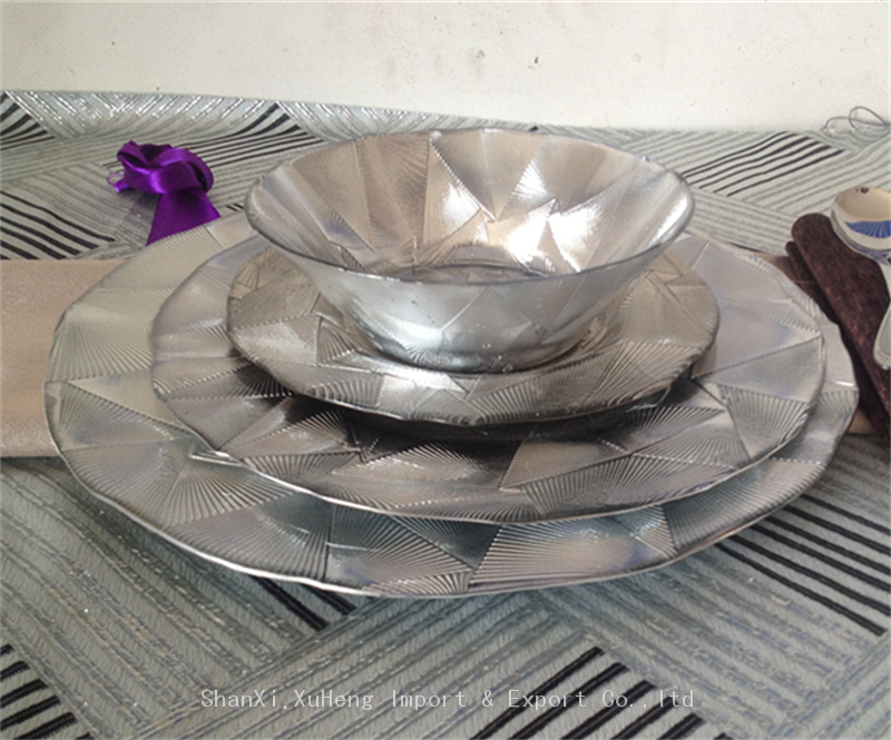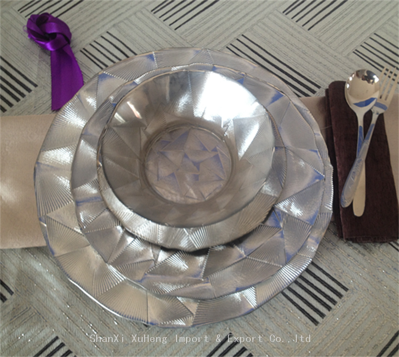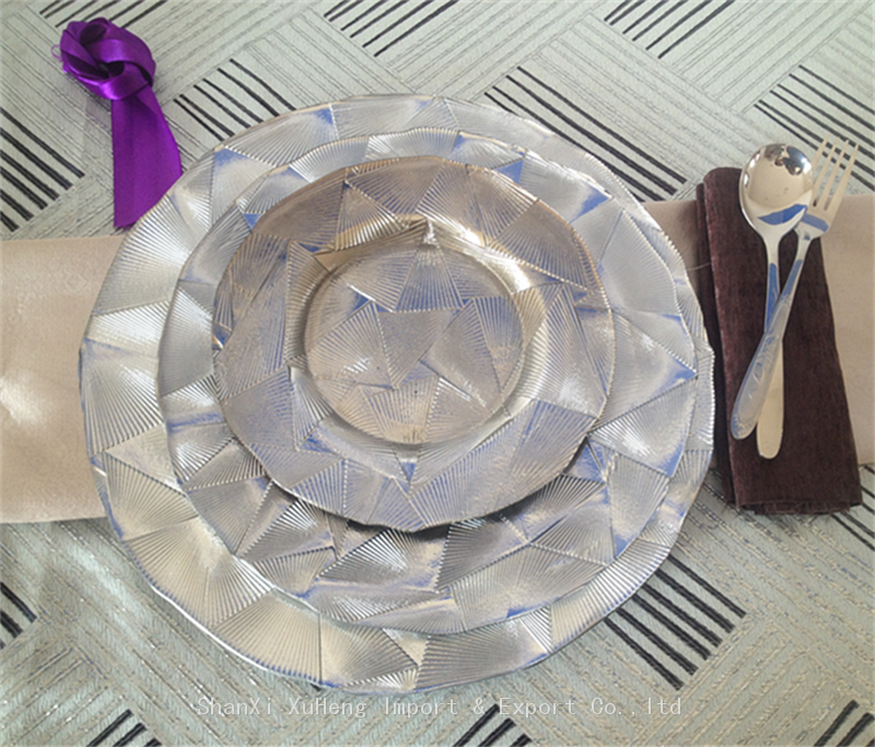 Wholesale Luxury Silver Colored Glass Charger Plate For Wedding Decoration Tableware