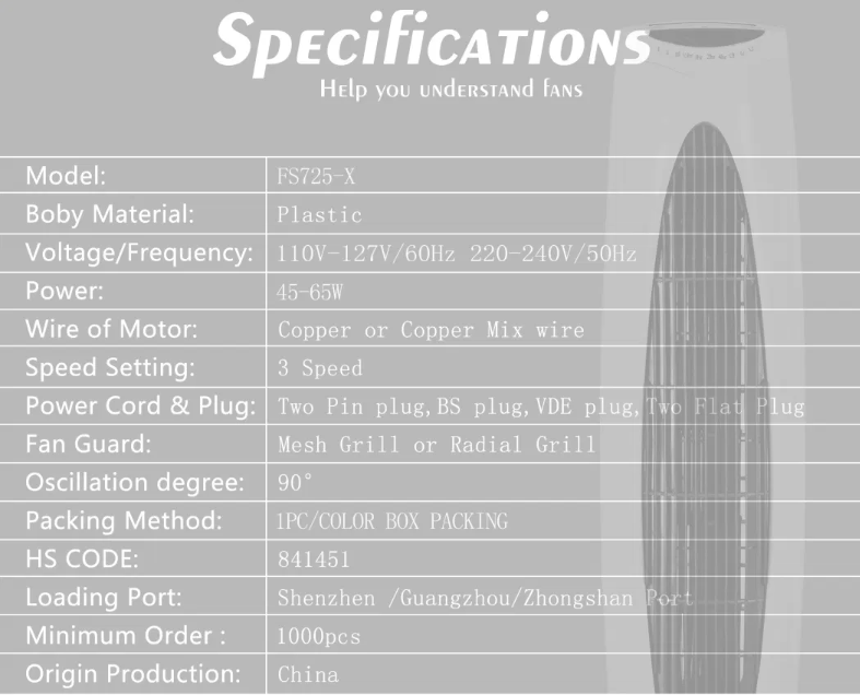 We are Manufacturing to offer Competitive price of Stand fan, Table fan, Wall fan, Industrial fan, Tower fan,orbit fan,Box Fan,Recharegable fan,DC solar Fan,2 in 1 fans ,3 IN 1 fan and So on.