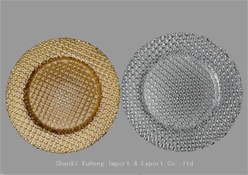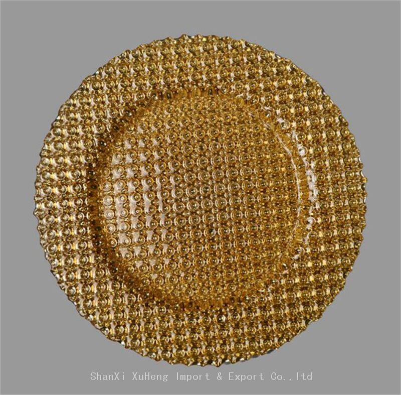 Home > Products > Glass Charger Plates > Custom 13 Inches Elegant Glass Gold Decorative Plates Wedding Round Dinner Charger Plates