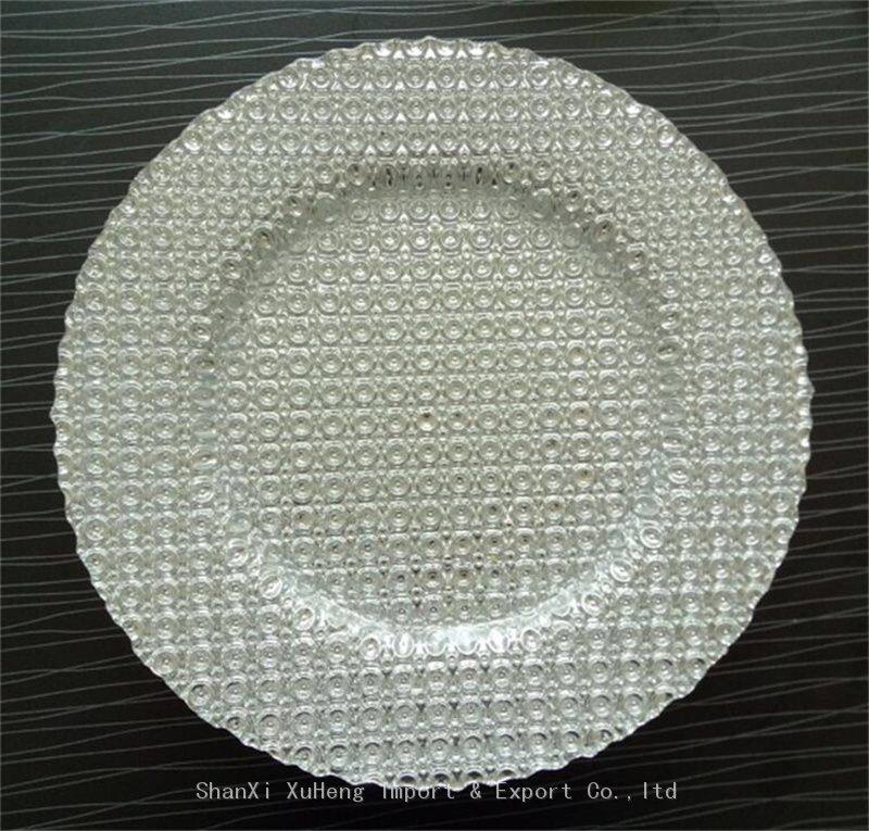 Wholesale Hand Made 13 Inches Transparent Clear And Silver Colored Banquet Wedding Glass Charger Plates