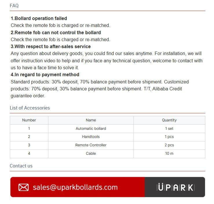 - UPARK Garage Door Traffic Security Durable Metal Safety Post Private Area Automatic E Bollard With Integral