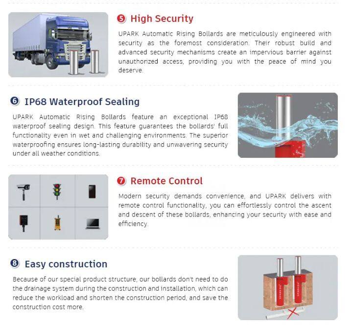 - UPARK Against Violent Vehicle Impacts Auto Electromechanical Bollards for School Parking Lot