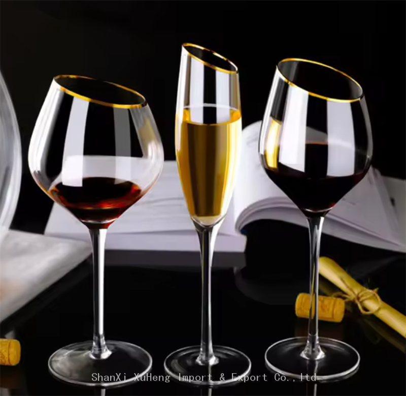 Wholesale Long Stem Beveled Red Wine Glass With Gold Rim Champagne Flutes For Wedding