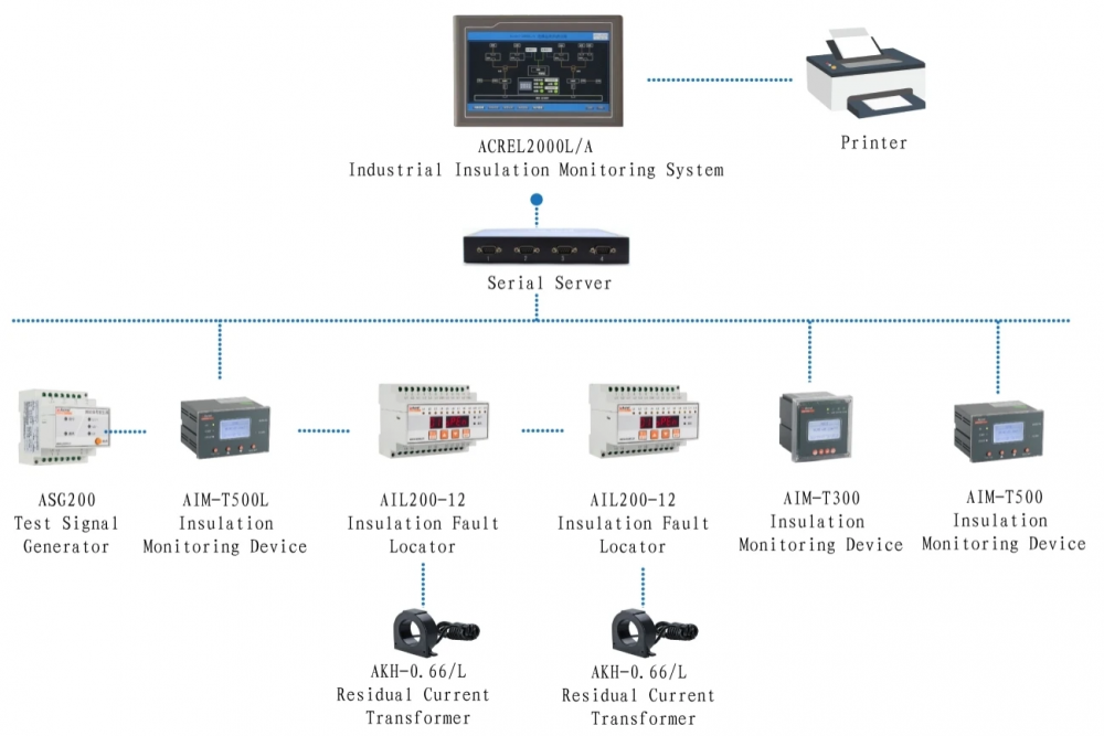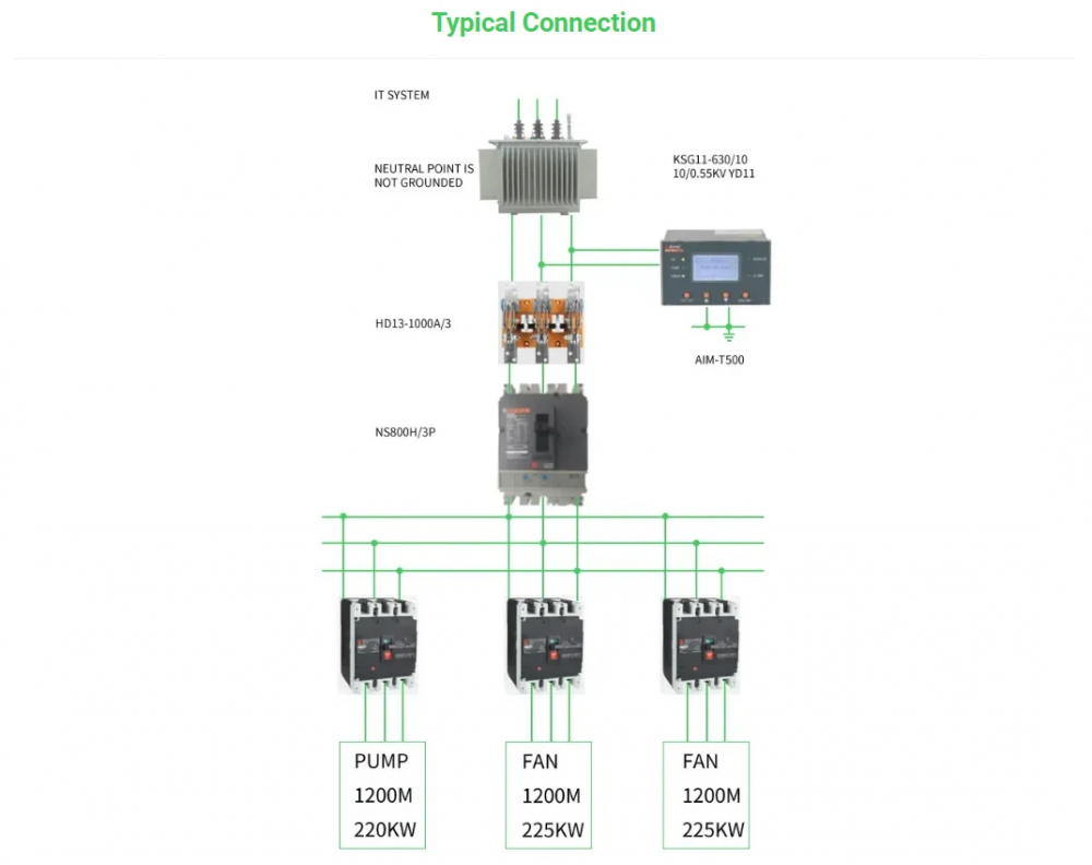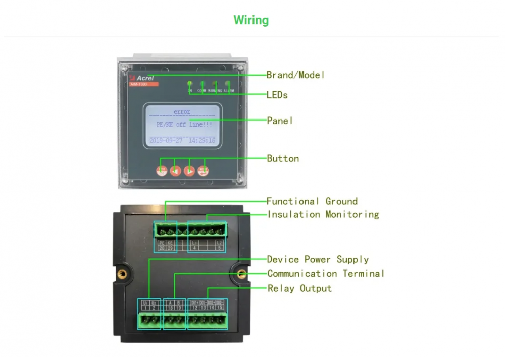 AIM-T300 insulation monitoring device is designed and developed by Acrel gathering the design experience of electric power meter industry for many years to monitor the insulation condition of low voltage IT distribution system (ungrounded system). The product adopts advanced micro controller technology, with high degree of integration, compact size and easy installation, and it integrates intelligence, digitalization and networking. The device, with many functions such as insulation fault warning, fault alarm, event recording and so on, can be used in the mines, glass factories, electric furnaces and test facilities, metallurgical plants, chemical plants, and exploded dangerous places, computer center, emergency power supply and other places to monitor the insulation status of IT system in real time. When insulation fault occurs, it will alarm and remind the staff to check the fault. The products conform to the requirements of enterprise standard Q/VDCL-26-2017 IT System Insulation Monitor.