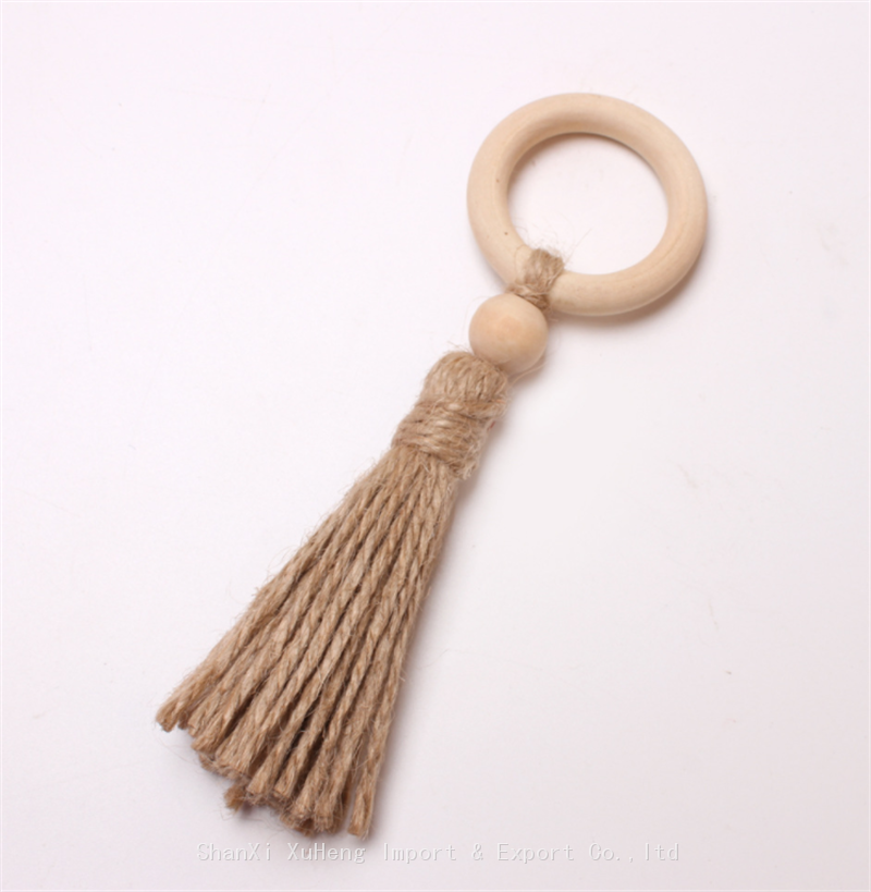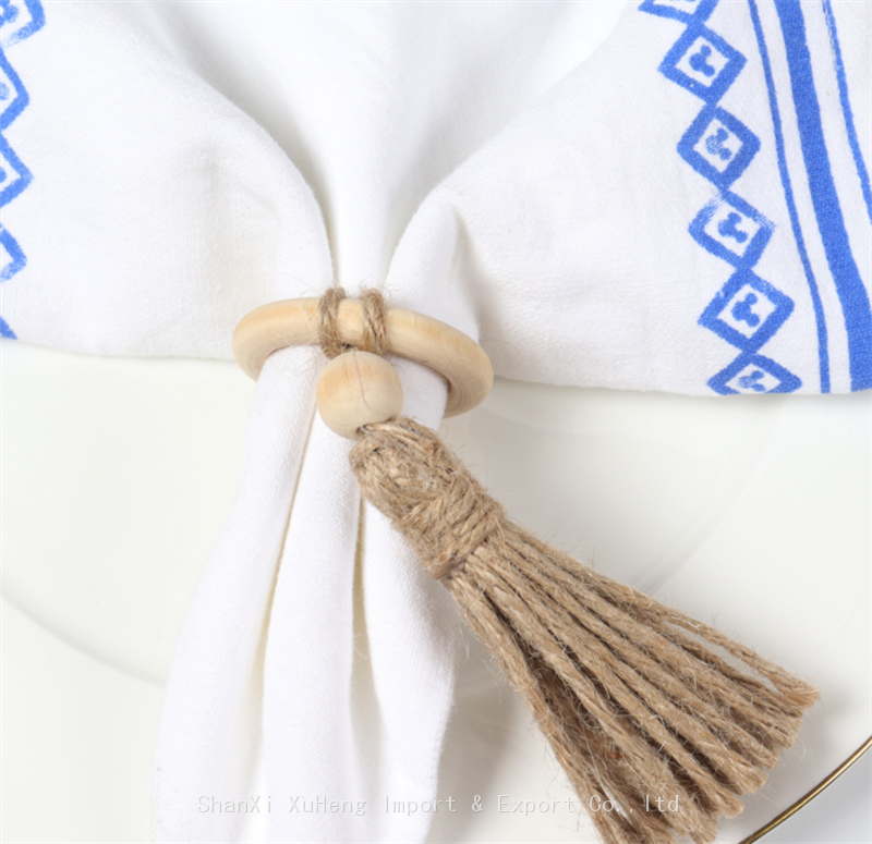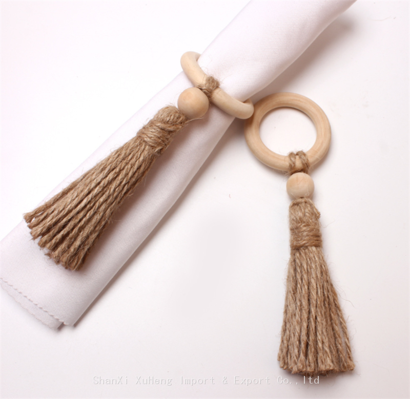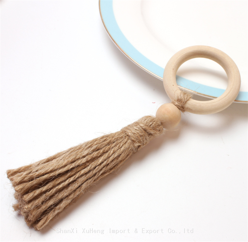 - New Arrival Handmade Wood Beads Woven Natural Hemp Rope Tassel Napkin Rings