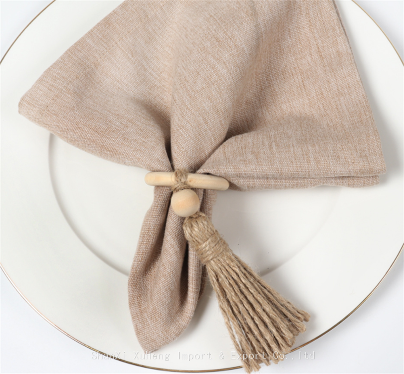 - Simple Wooden Beaded Tassel Napkin Buckle For Wedding Banquet Hotel Decoration