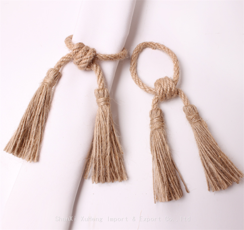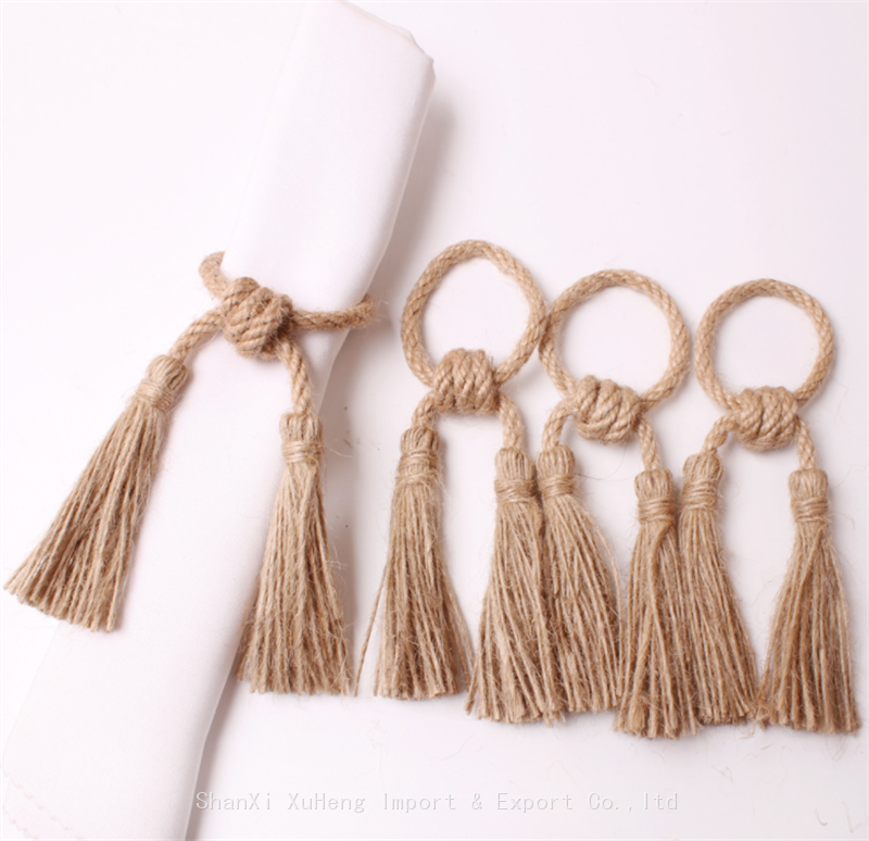 - New Arrival Handmade Wood Beads Woven Natural Hemp Rope Tassel Napkin Rings