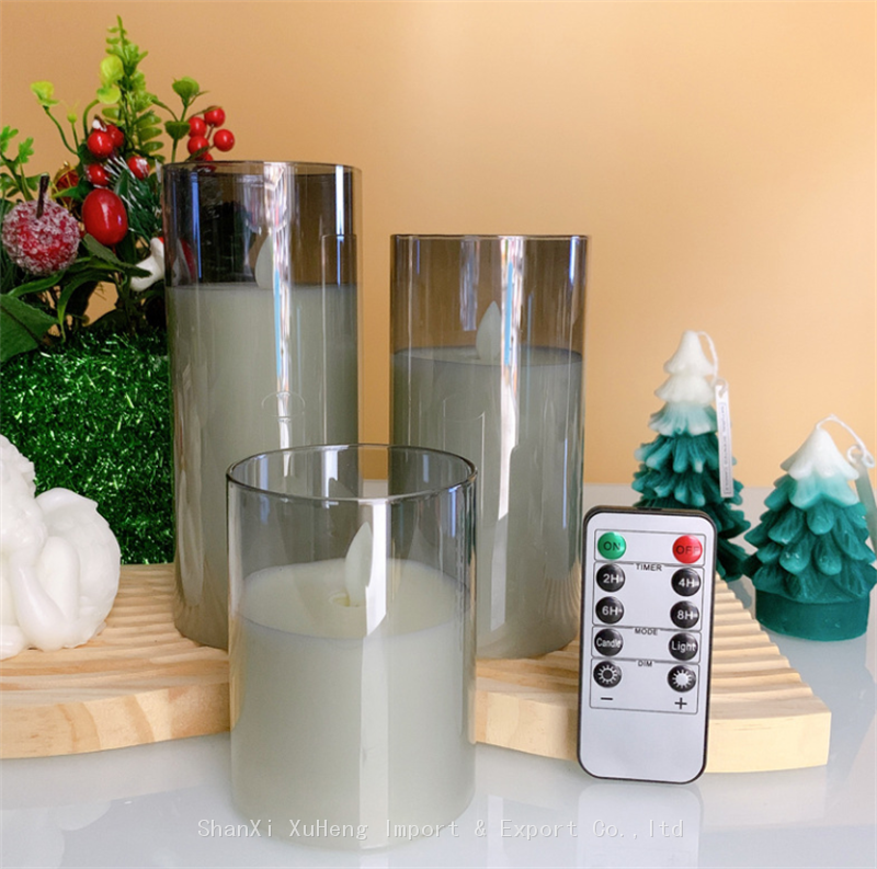 Wholesale Hot Selling Simulation Flame Grey Candle Set Electroplated Smoke Glass LED Candle With Remote Control