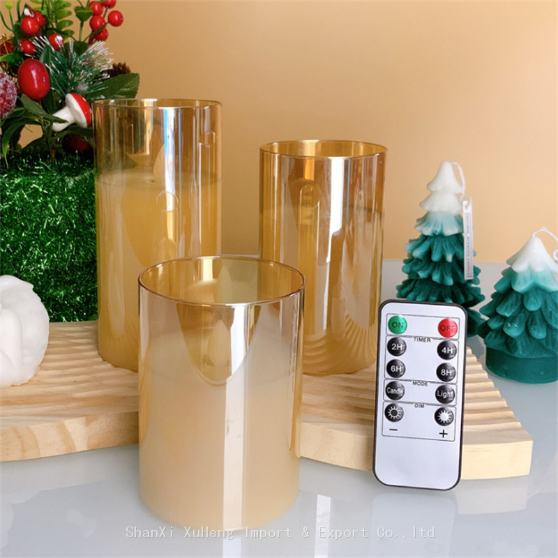 Home > Products > Iron Vase and Candle Holder > Wholesale Hot Selling Simulation Flame Grey Candle Set Electroplated Smoke Glass LED Candle With Remote Control