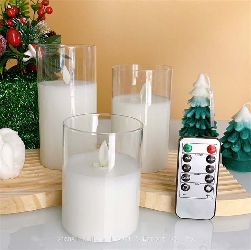 Wholesale Hot Selling Simulation Flame Transparent Candle Set Electroplated Clear Glass LED Candle With Remote Control