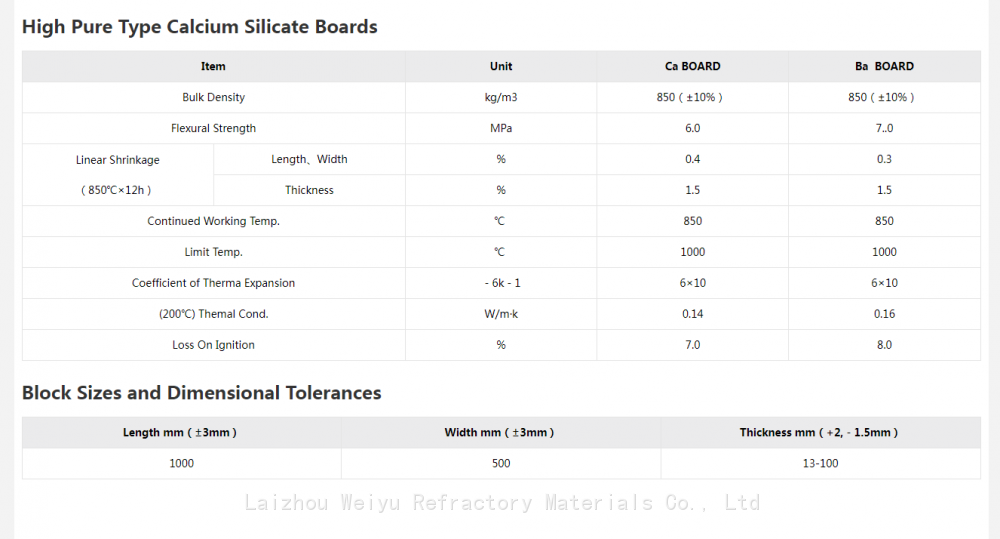 Calcium Silicate Laizhou Refractory Material Calcium Silicate Board