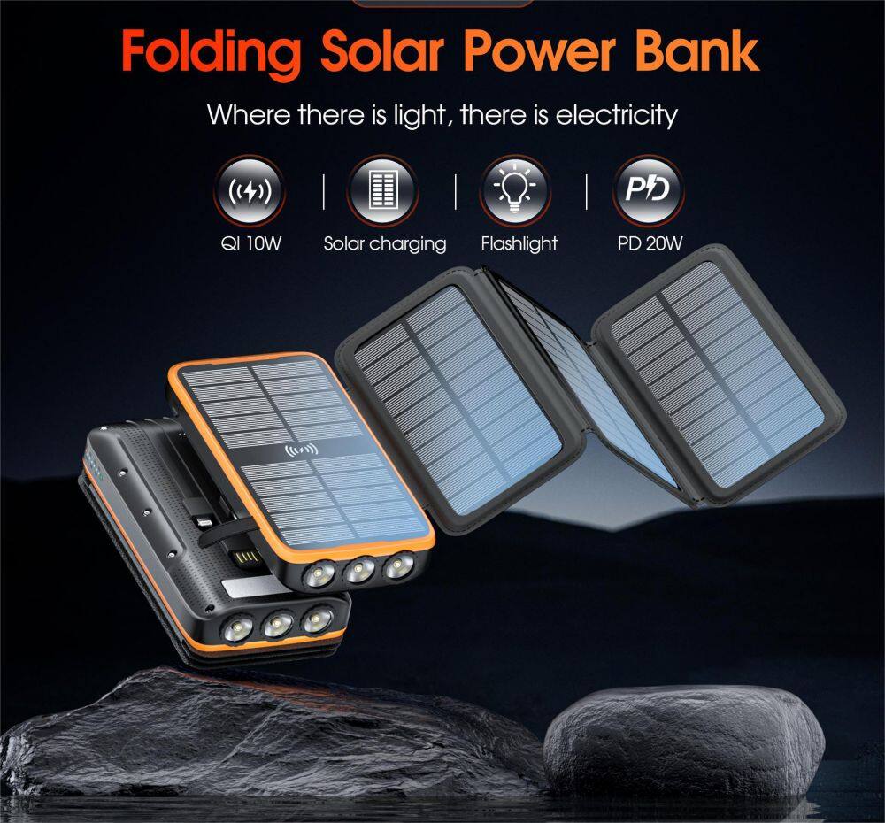 Home > Products > Power Bank > Portable Folding Solar Power Bank 20000mAh With Built-in Three Wire 10W Ultra Large Capacity Wireless Fast Charging Mobile Power Supply
