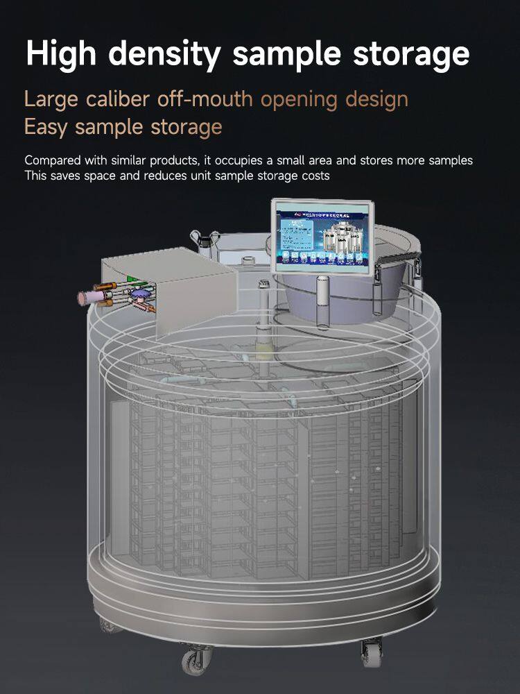 The bottom position, which is the liquid nitrogen storage area, is equipped with an evaporator to provide evaporated nitrogen for sample storage to cool down.