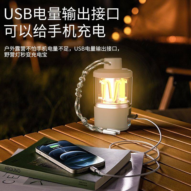 - Outdoor Camping Light Camping Retro Charging Treasure Emergency Camping Light Tent Lighting Atmosphere Light Hanging LED Charging