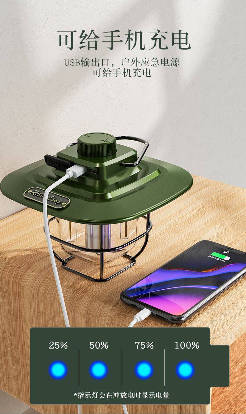 - Outdoor Camping Light Camping Retro Charging Treasure Emergency Camping Light Tent Lighting Atmosphere Light Hanging LED Charging