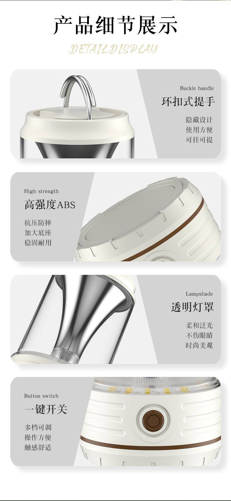 - Camping Light Rechargeable Outdoor Mountain Camping White Light Warm Light Type-C Rechargeable Tent Light