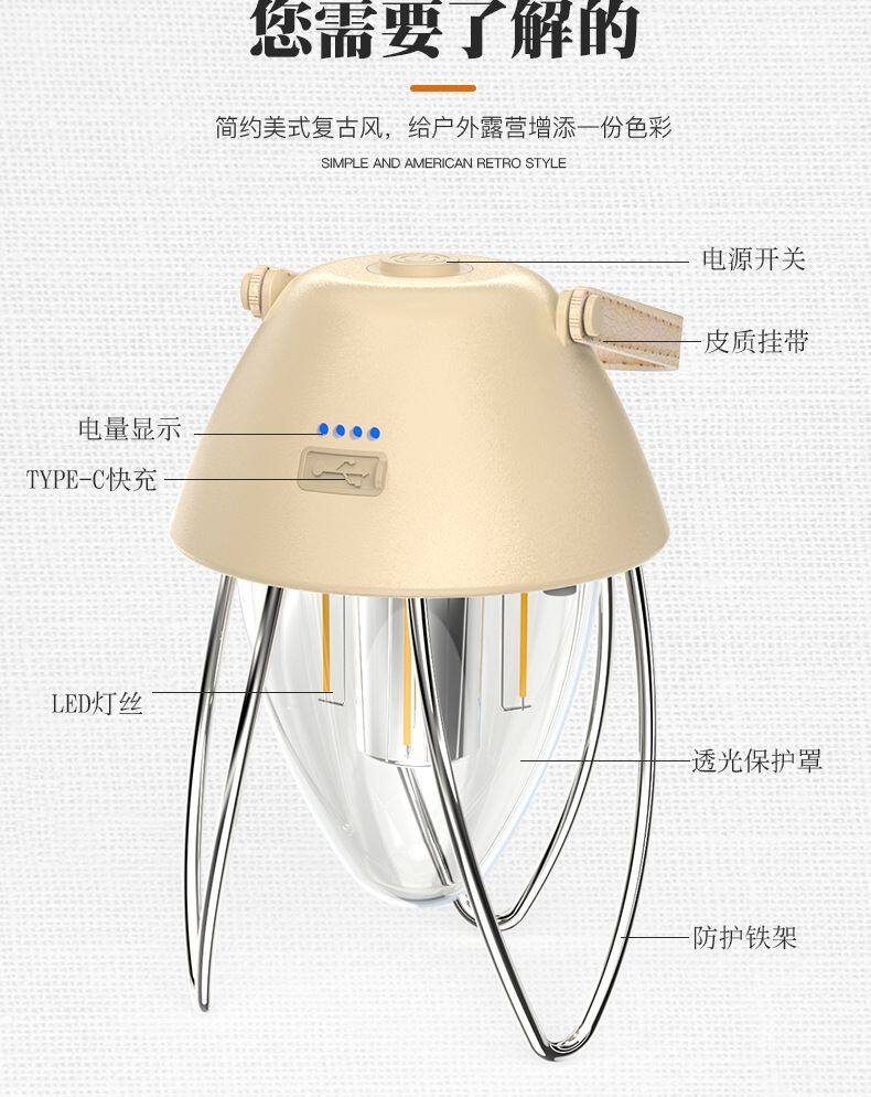 - Outdoor Camping Light Camping Retro Charging Treasure Emergency Camping Light Tent Lighting Atmosphere Light Hanging LED Charging