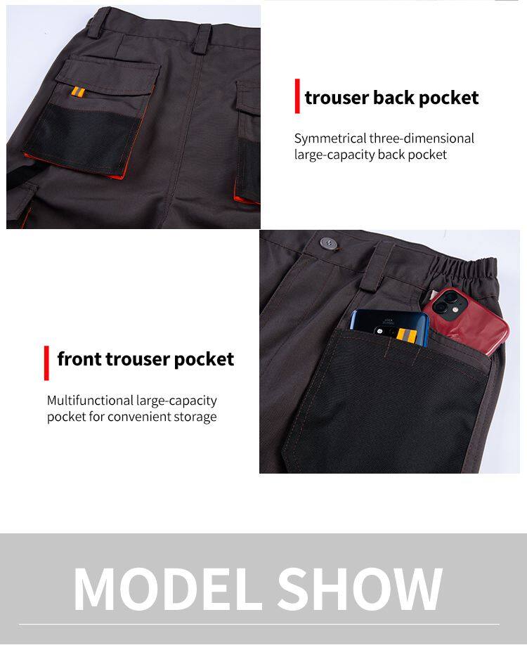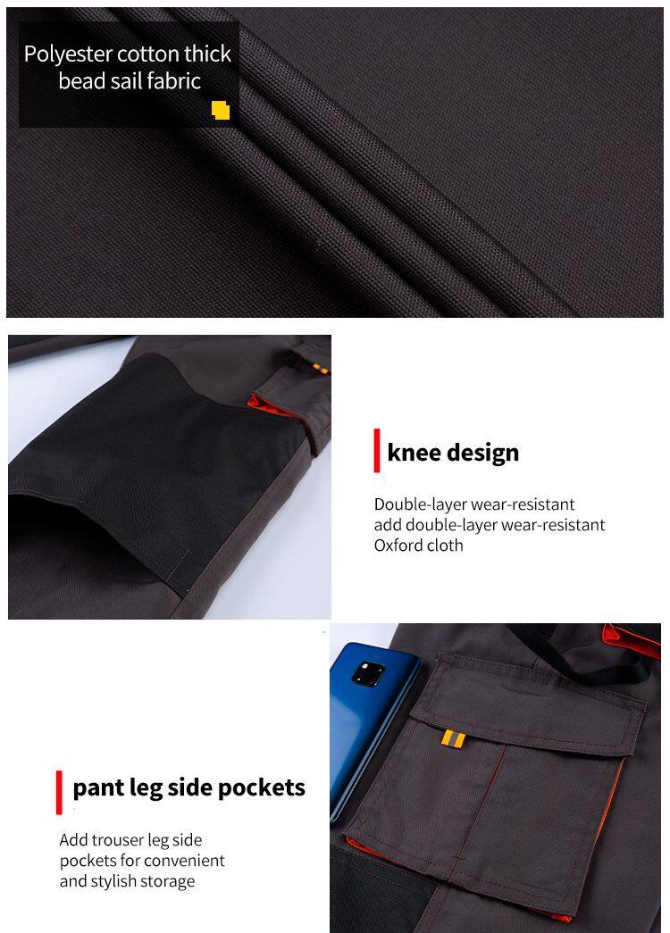 Customized factory wholesale of workwear pants, supporting logo embroidery. This workwear is suitable for men and women, with thickened knees and Oxford fabric color contrast, comfortable and wear-resistant, sweat wicking and breathable, making your work easier.