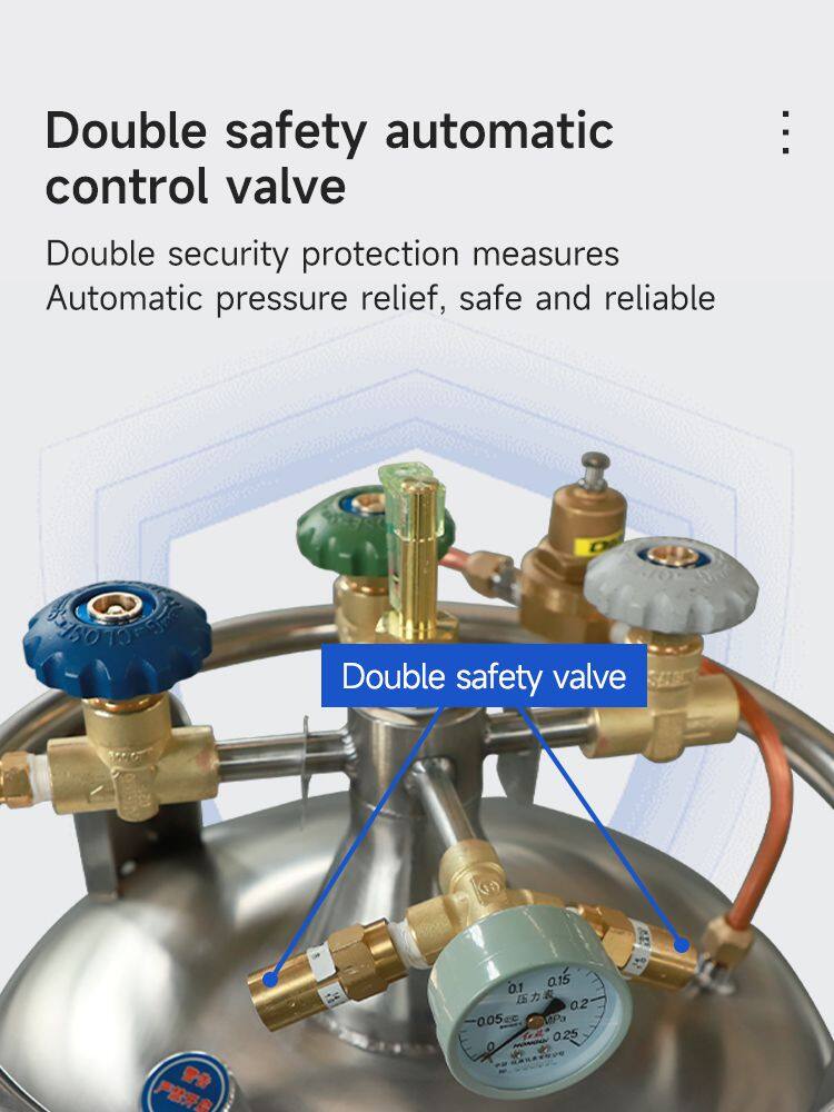 When the pressure reaches 0.09MPa, the pressure is too high and the liquid nitrogen flow rate is fast. In order to avoid dangerous events, the safety valve will be triggered and the liquid discharge will be interrupted;