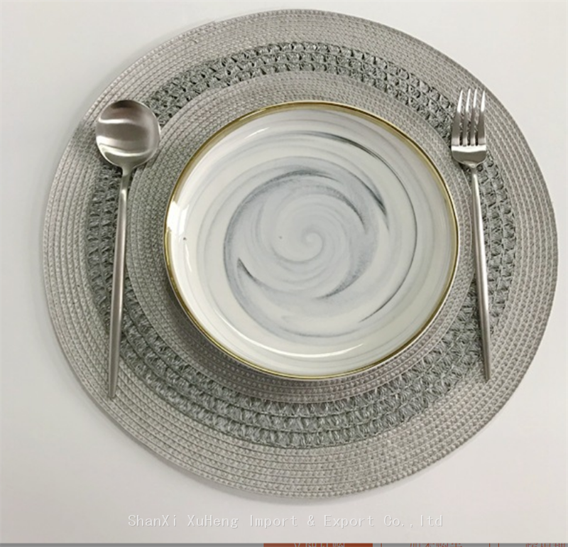Home > Products > Table Mat > Wholesale 38 cm Popular Silver Grey Colored Round Woven Table Place Mat For Wedding Table Decoration