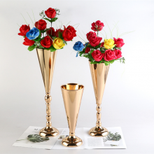 European Metal Gold Trumpet Flower Arrangement Tabletop Decoration Wedding Table Center Vase Flower Centerpiece Flower Vase