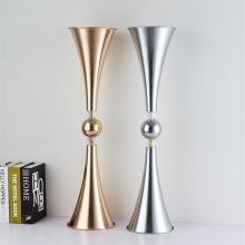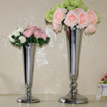 Metal Tall Silver Plated Tabletop Gold Trumpet Vase Flower Stand For Wedding Centerpieces