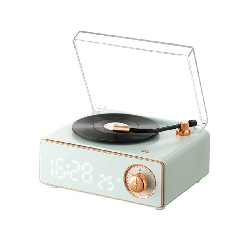 Home > Products > Bluetooth speaker > Retro Alarm Clock Bluetooth Speaker Wireless Speaker Small Heavy Subwoofer Sound Quality Vinyl Record Player Bluetooth Speaker Gift