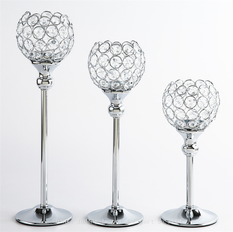 Europe Silver Crystal Candle Holder Decorations For Events Party Supplies Metal Candle Holder