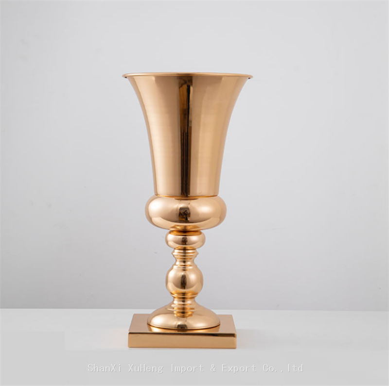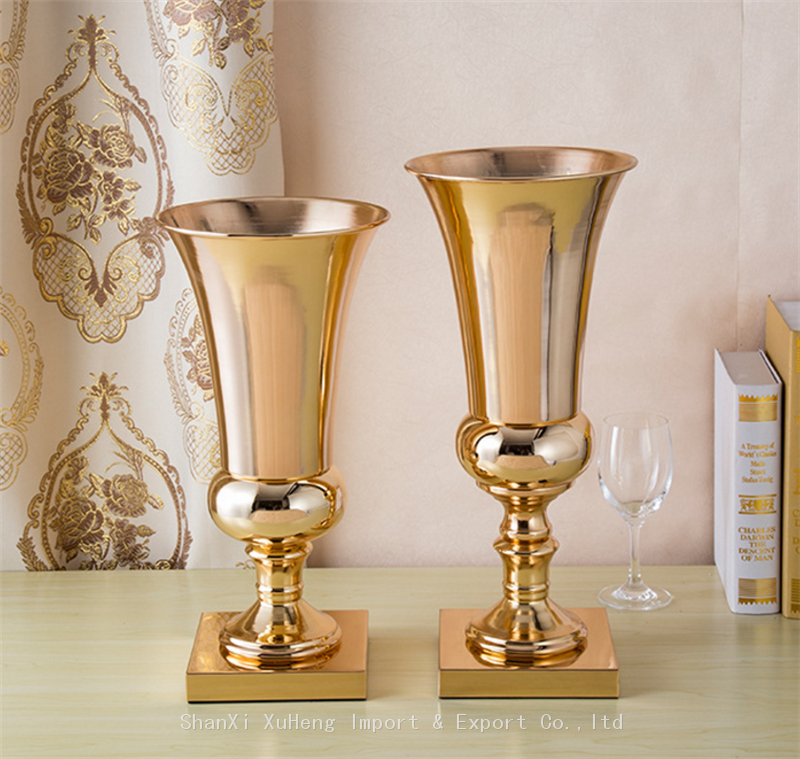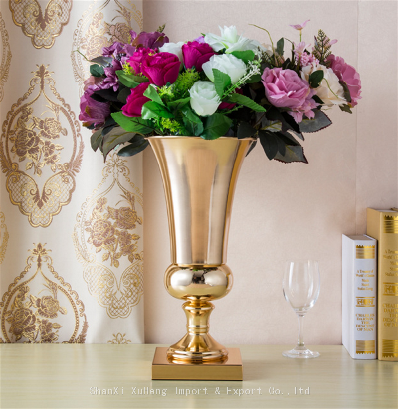 Home > Products > Iron Vase and Candle Holder > Wedding Props Road Lead Gold Electroplating Iron Square Base Vase Trophy Decoration Stage Main Table Decoration