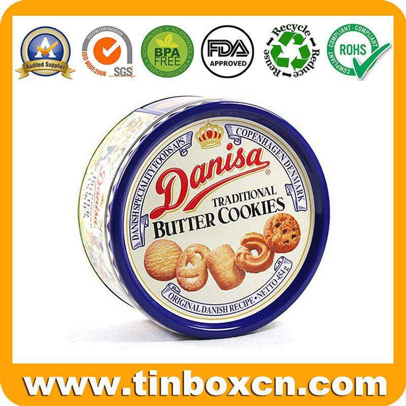 Typical Danisa Round Cookies Tin Can With Vivid Embossing and Custom Printing