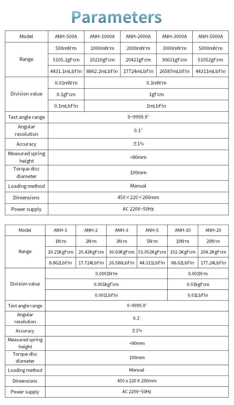 ANH series of digital torsion spring testing machine is designed for testing and testing a variety of torsion spring and an intelligent multi-function measuring instruments.