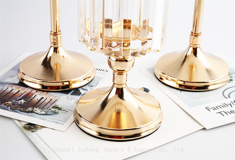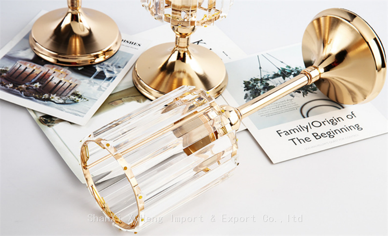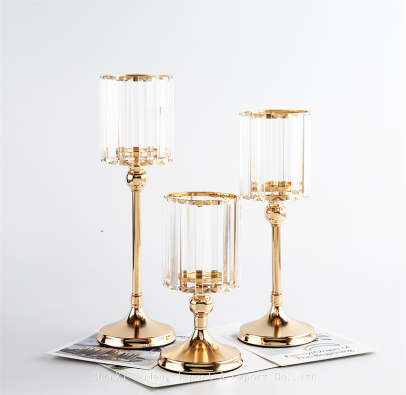 - Luxury Gold Plate Crystal Candle Cup Metal Iron Square Pillar Candlestick Candle Holder Party Dinner Table Decorative