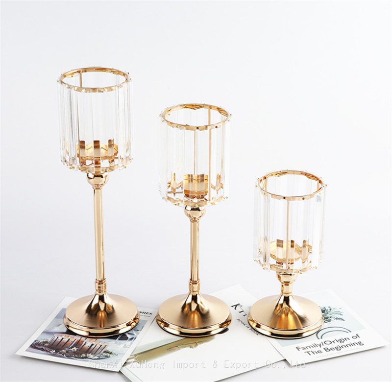 Home > Products > Iron Vase and Candle Holder > Hot-Selling Cylinder Shape Gold Crystal Candle Holders Table Decorations Crystal Tea Light Candle Holders