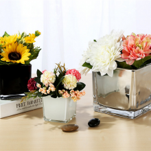 Hand Made Wedding Home Decoration Modern Luxurious Electroplate Mirror Gold Silver White Black Colored Square Glass Vase