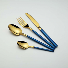 Made In China Blue Colored Handle Silverware Gold Plated Stainless Steel Flatware Cutlery Set For Wedding