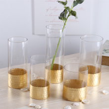 Home Luxury Wedding Centerpiece Decorative Electroplate Golden Crystal Cylinder Glass Flower Tabletop Vase Pot