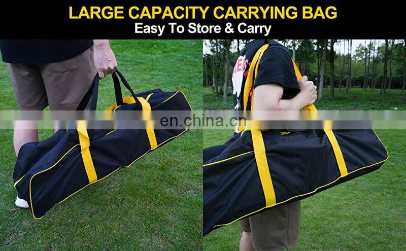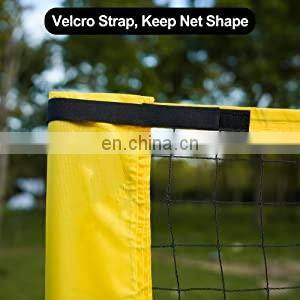 This portable sports net allows for quick and easy setup and takedown because the thickened bungee cord and new nylon material 4-way connector joins all poles at a time.