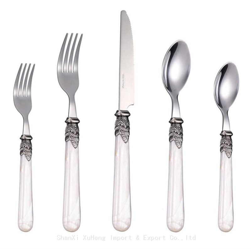 Stainless Steel Knife Fork Spoon Set Marble Plastic Handle Tableware Household Retro Dessert Scoop Steak Sword Flatware Tools