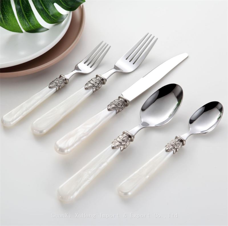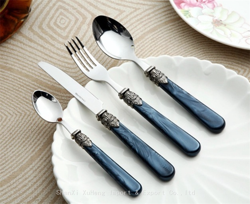 Home > Products > Cutlery > Stainless Steel Knife Fork Spoon Set Marble Plastic Handle Tableware Household Retro Dessert Scoop Steak Sword Flatware Tools