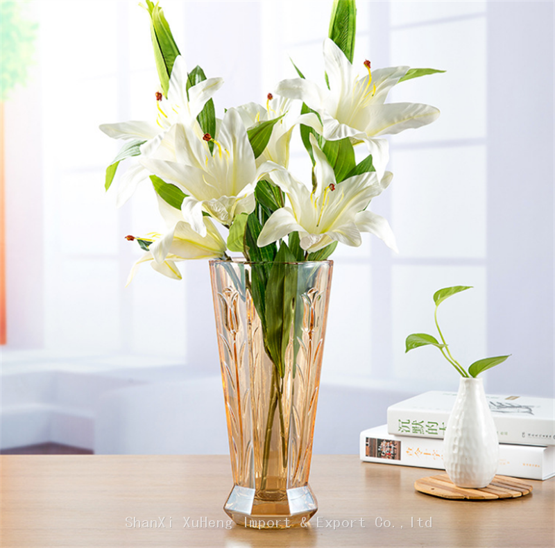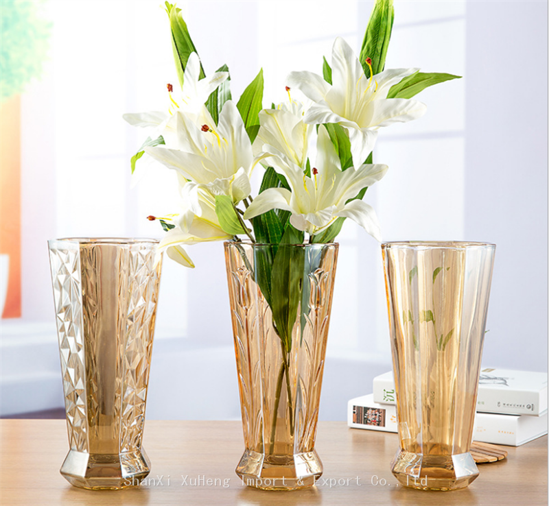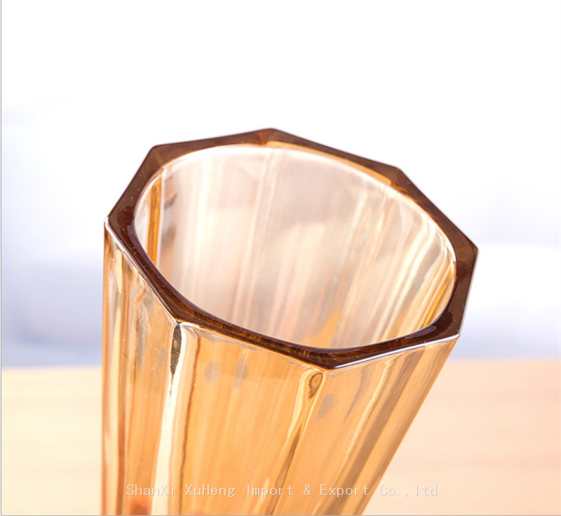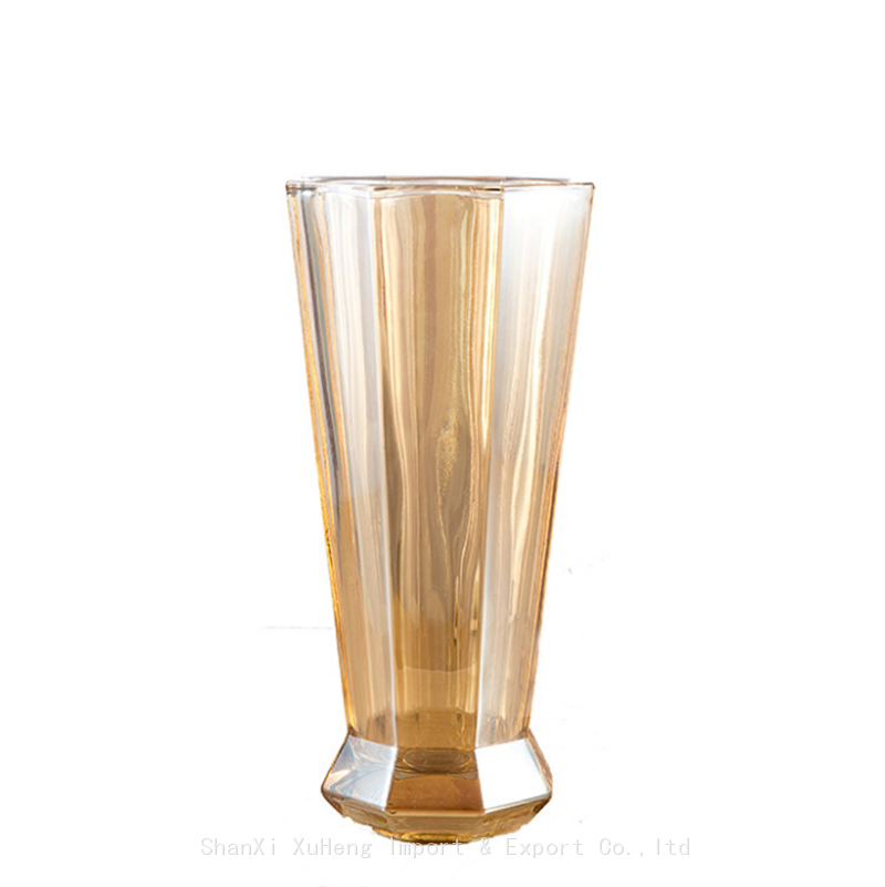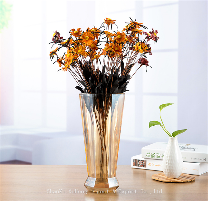 Amber Gold Colored Glass Vase Flowers Arrangement Desktop Decoration Flower Vase For Home Decor