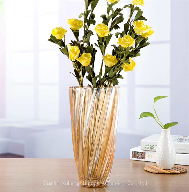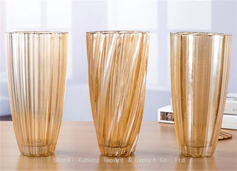 Gold Vertical Glass Vase Home Decoration Desktop Flower Container For Christmas Party