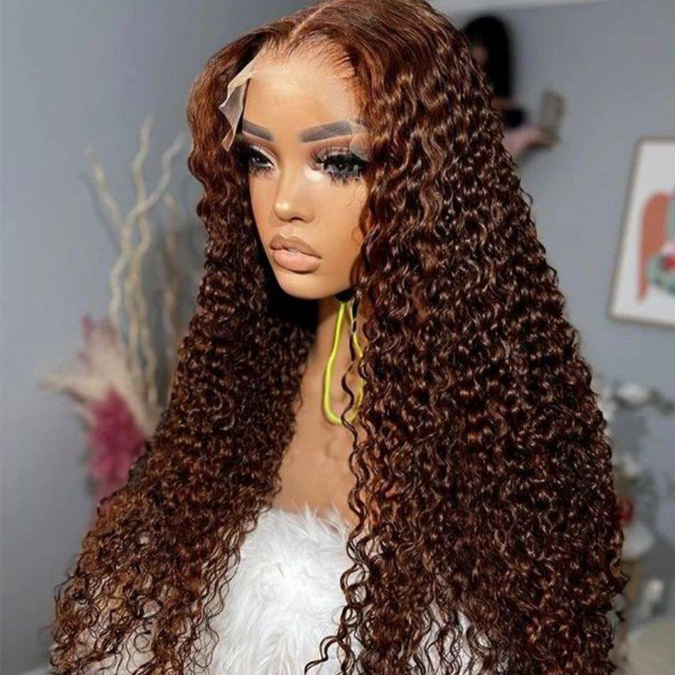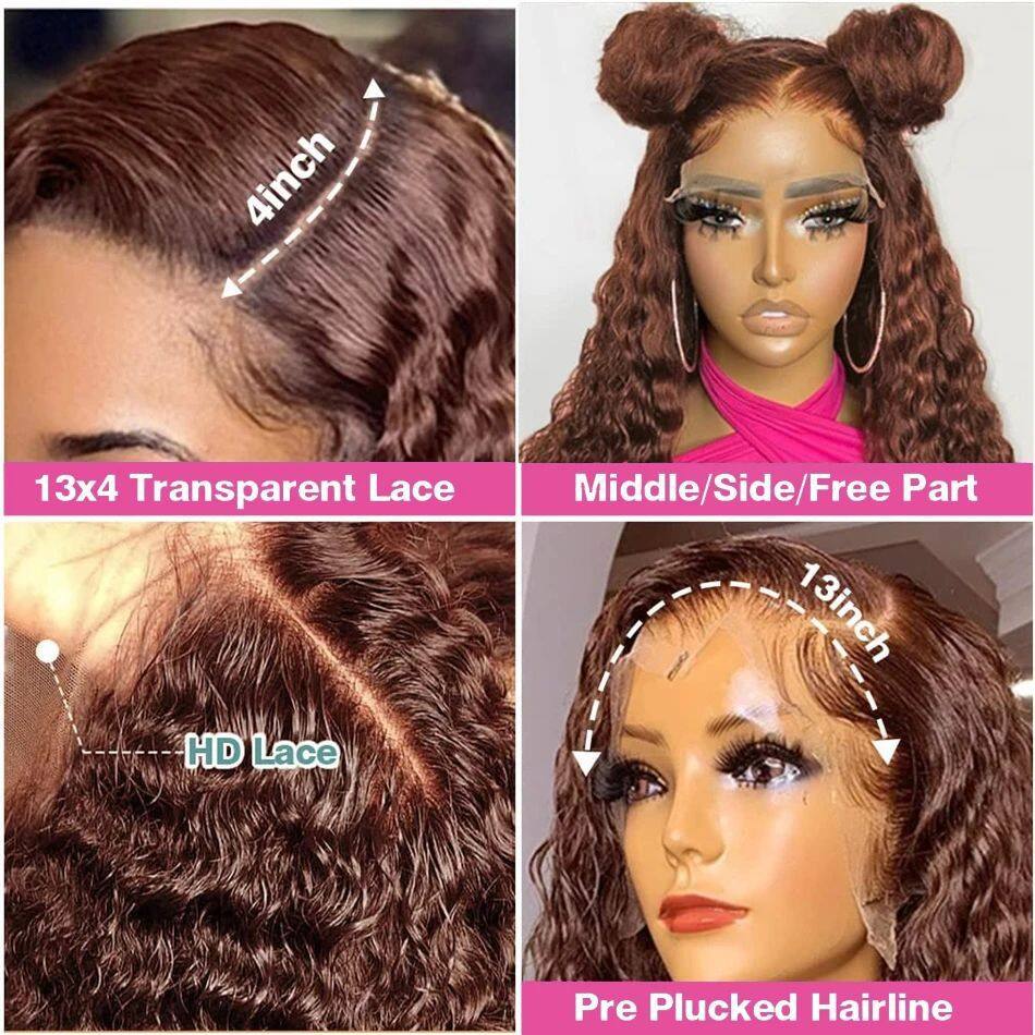 30 Inch Chocolate Brown Deep Wave Preplucked Human Hair 13x4 13X6HD Transparent Lace Front Wigs Curly Lace Frontal Wig for Women