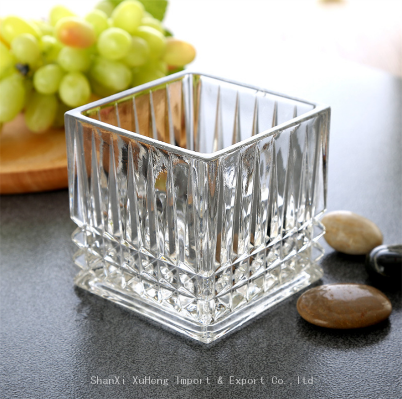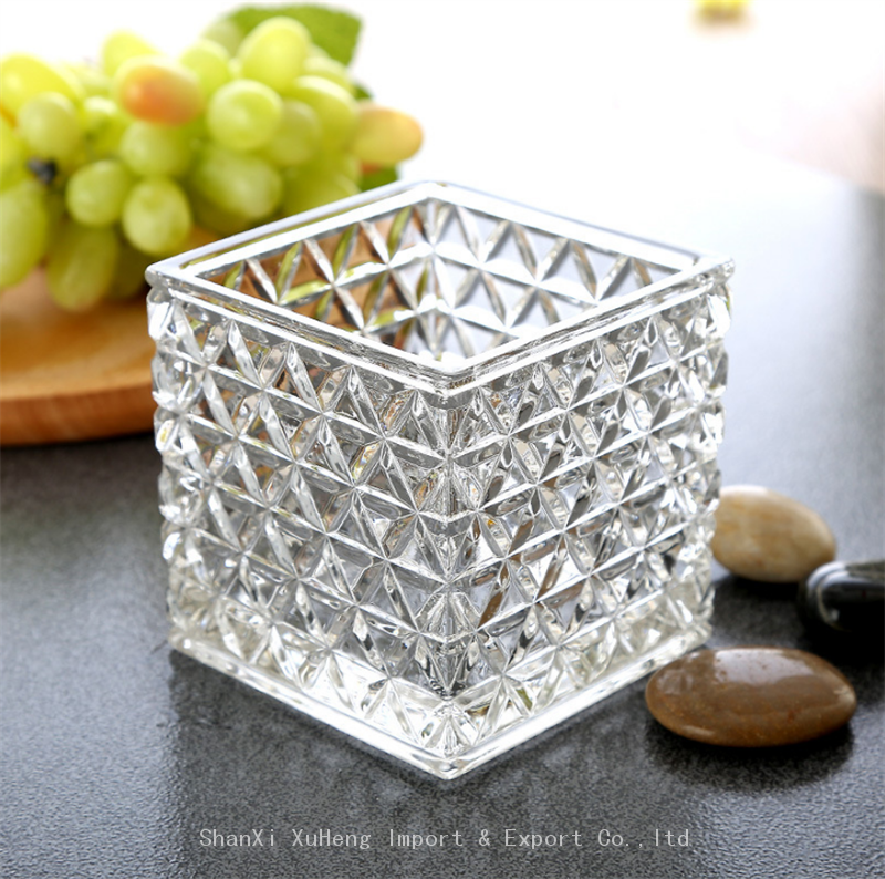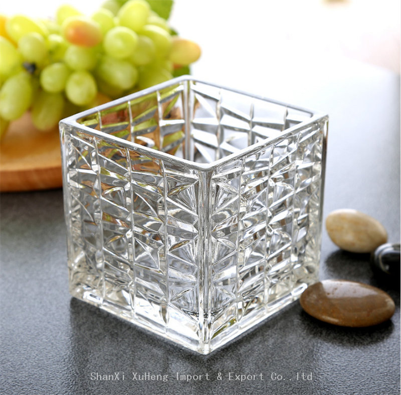 High Quality Popular Selling Embossed Clear Glass Square Flower Pot Vase Transparent Crystal Candle Holder