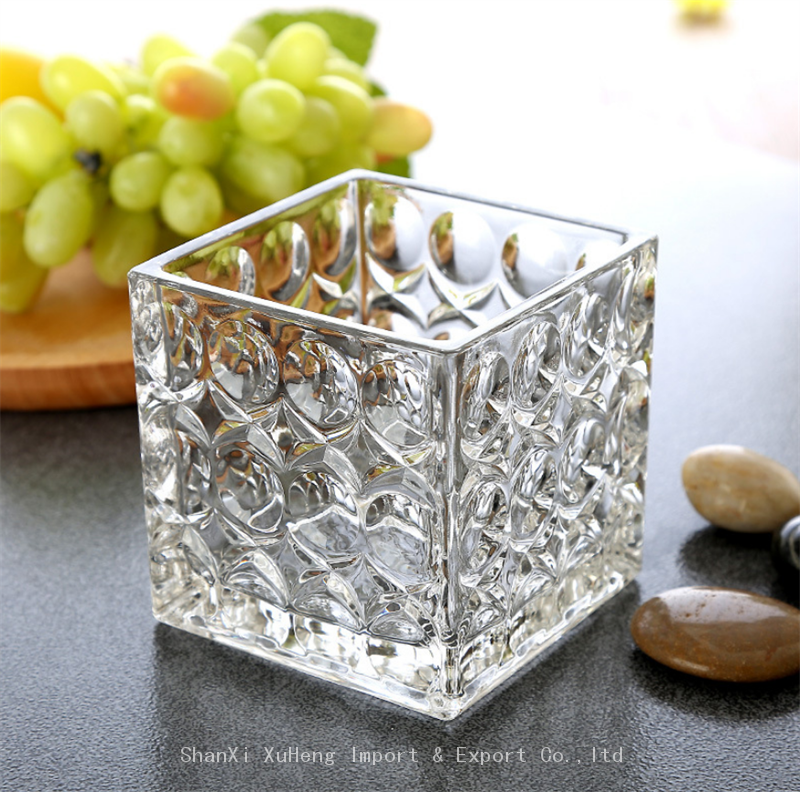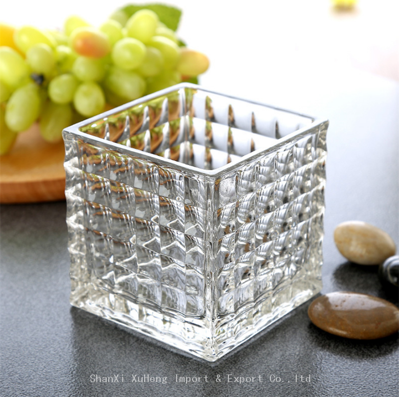 Home > Products > Glass Vase and Candle Holder > High Quality Popular Selling Embossed Clear Glass Square Flower Pot Vase Transparent Crystal Candle Holder