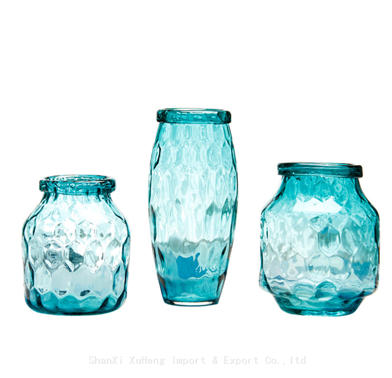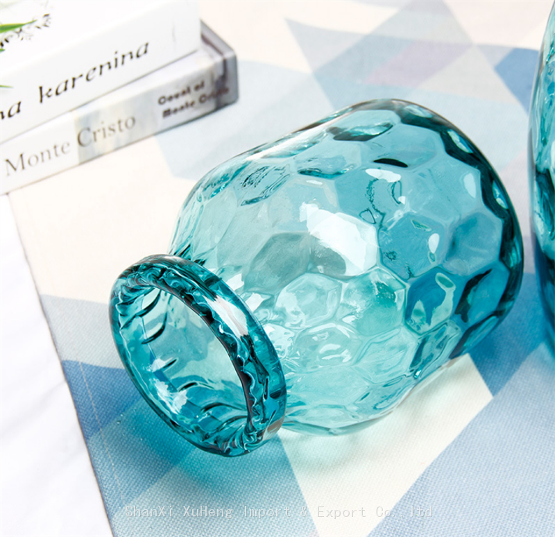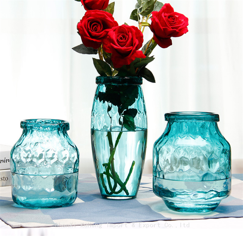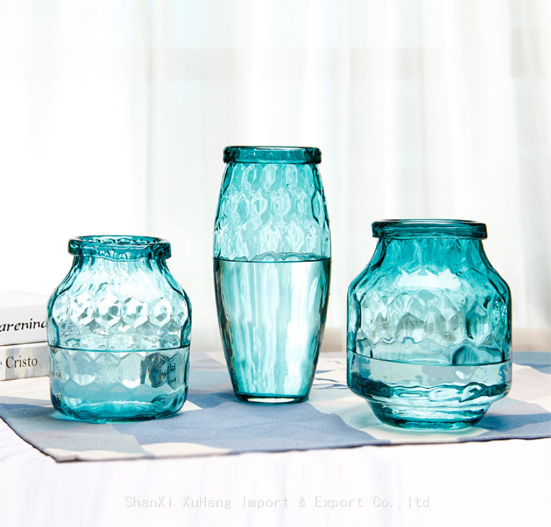 Nordic Blue Colored Glass Insertions And Light Luxury Decorations Lily Shaped Glass Vase For Living Room