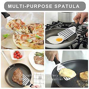 These fish turner spatulas can work great with fish, egg, meat, dumpling or more. Our premium stainless steel spatulas are perfect for frying, baking, lifting, turning, or transferring. Better service in kitchen, back yard, camping, baking, buffet, restaurant.