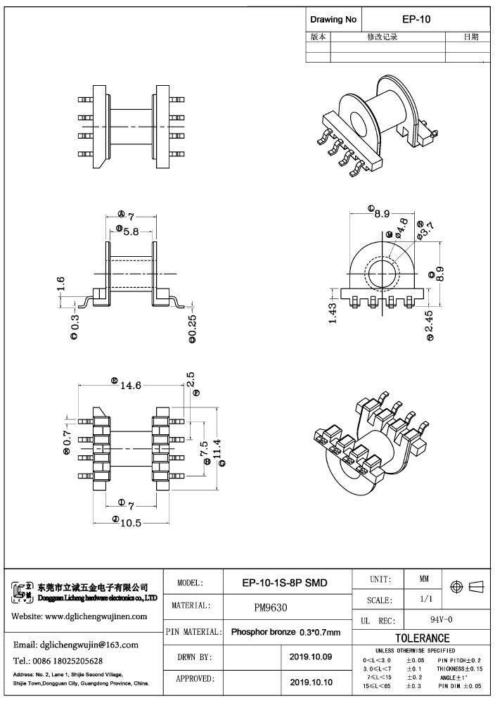 SMD EP10 Transformer Bobbins EP10 SMD (4+4P)Bobbins,EP10 Transformer Accessories,PM9630 Material With Good High Temperature Resistance.US$ 0.05 - 0.06MOQ: 5000 Pieces