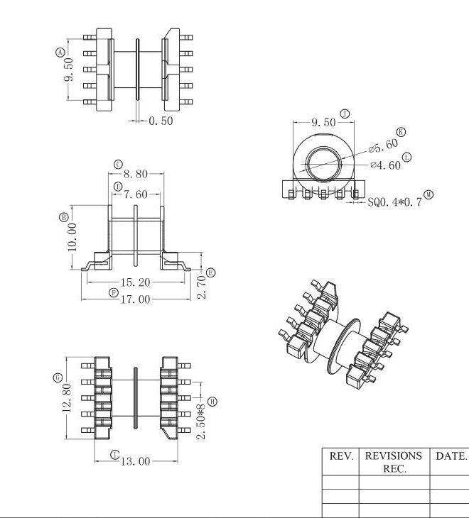 EP13-2SEC-10P SMD/SMT Transformer Bobbins (5+5P),EP13-2S Transformer Accessories Bobbins,PM9820 Material, With Good High Temperature Resistance.