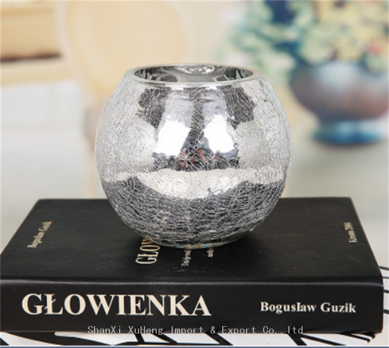Round Silver Plated Cracked Finish Glass Decorative Flower Bowl Vase For Home Decoration