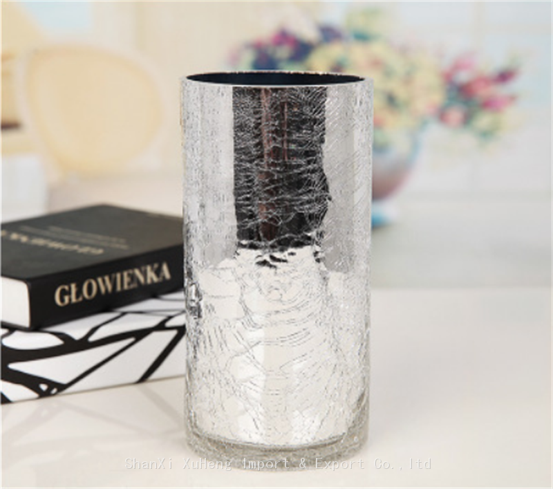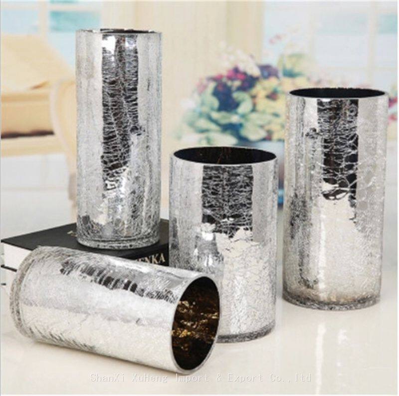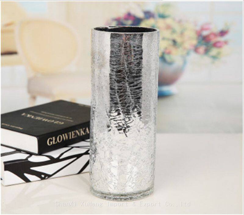 Silver Plated Glass Cylinder Vases Thick Tall Crackle Glass Vase For Home Wedding Decoration